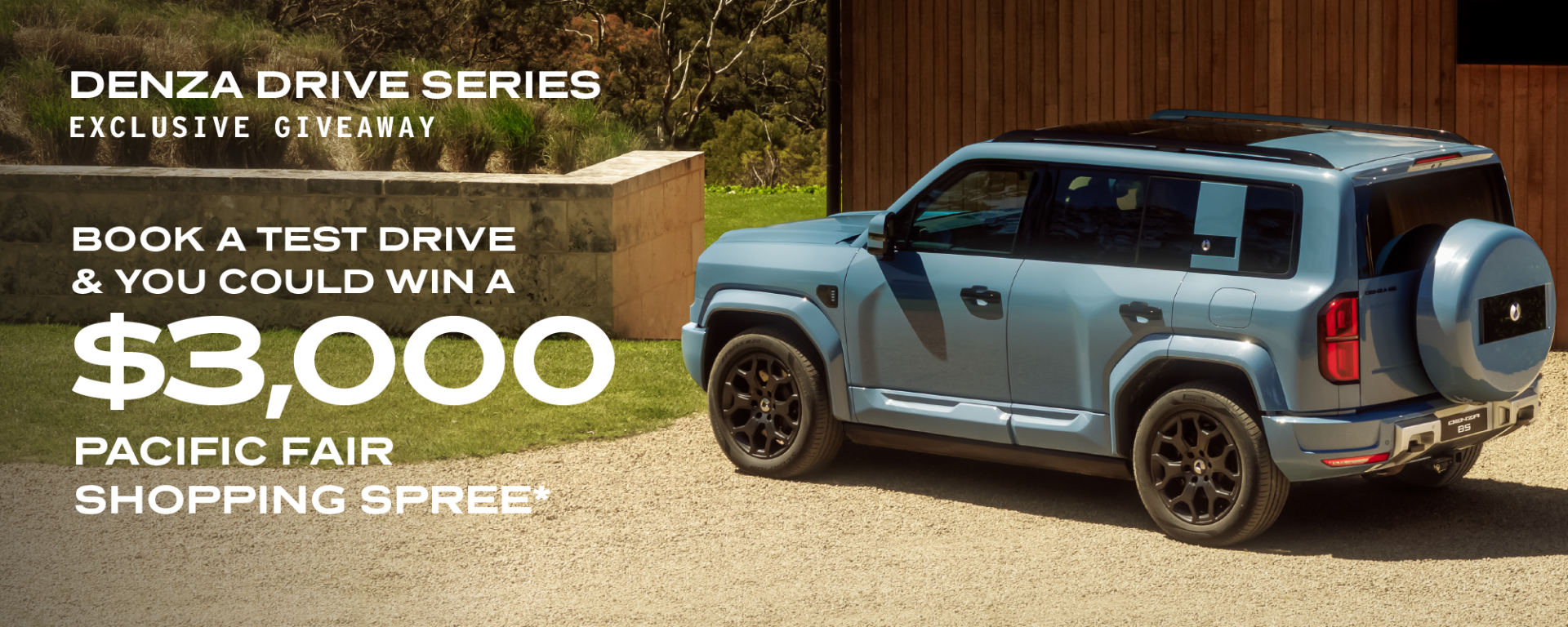 - Register and complete a test drive of a DENZA B5 or DENZA B8 at the DENZA Drive Series event held at Pacific Fair during the promotion period.